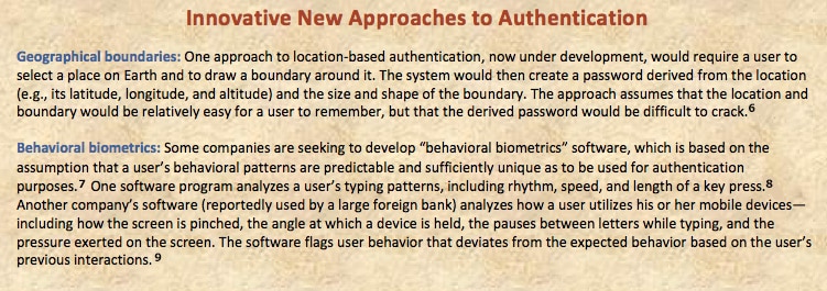 - See Orr Hirschauge, Beyond Passwords, Behavior Looms, The Wall Street Journal (July 11, 2014), http://online.wsj.com/articles/beyond-passwords-behavior-looms-1405084188.